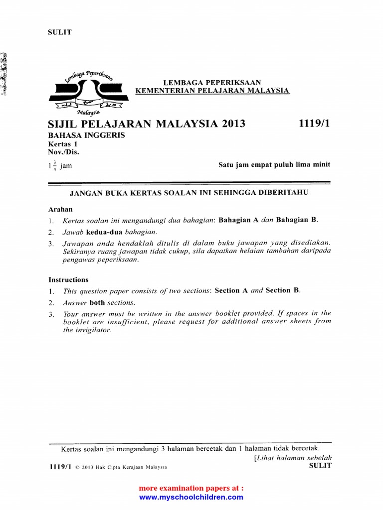 Kertas 1 Bahasa Inggeris Spm Armsac
